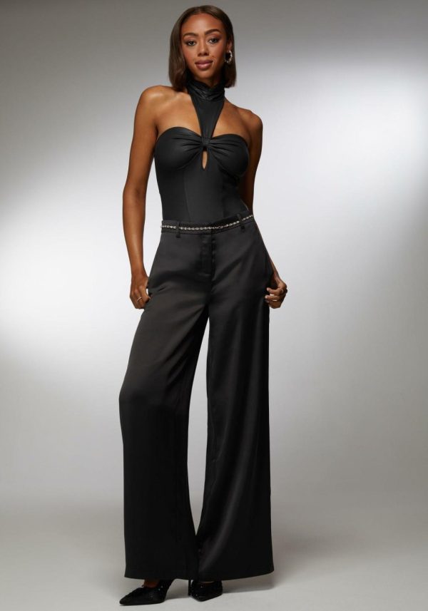 Bebe Tops | Mock Neck Halter Coated Knit Bodysuit Black Women